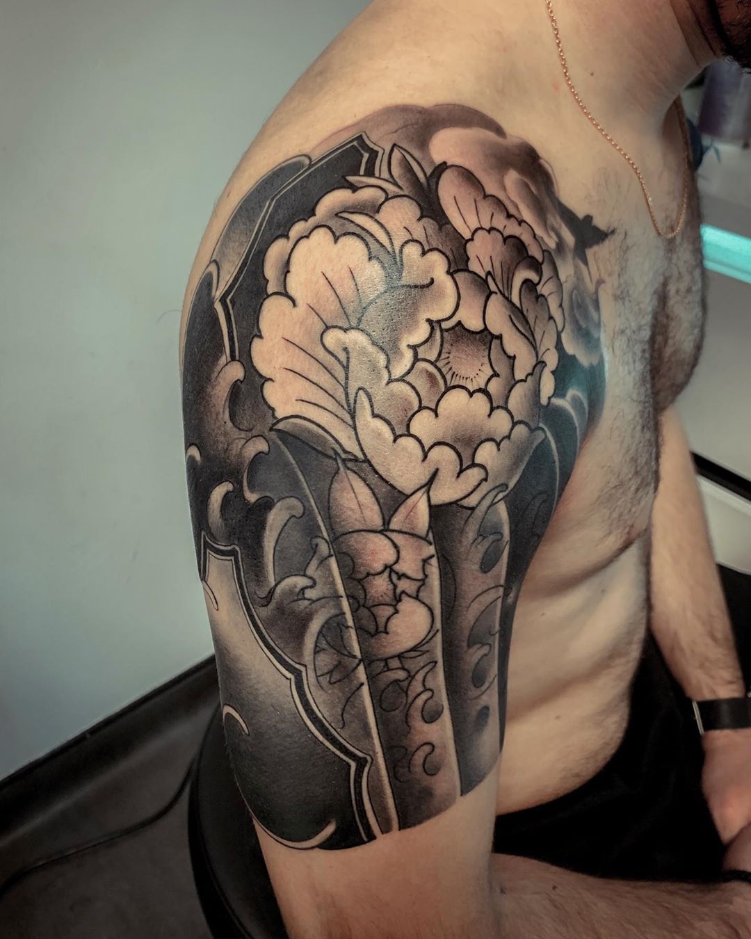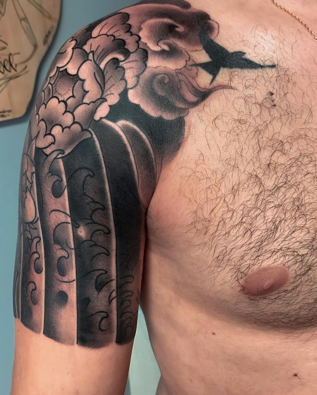 Haut de bras neojap noir et gris par Franck Anzalone Misti-Ka