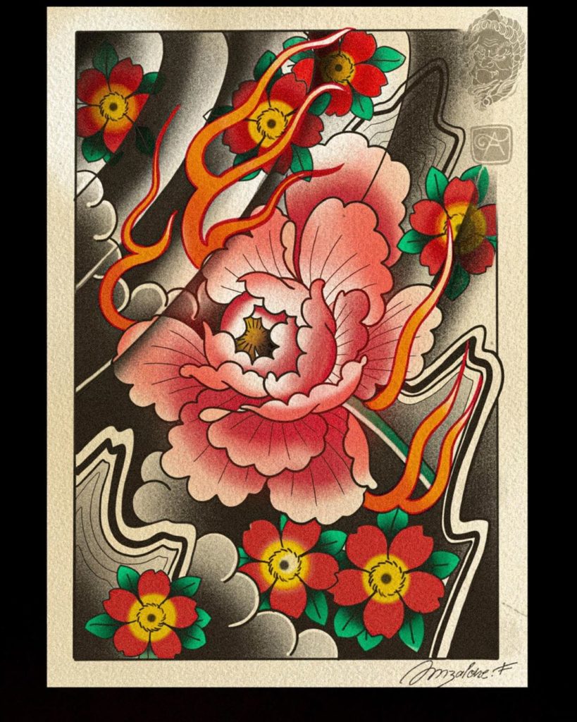 Tattoo back floral japonais Franck Anzalone Misti-Ka