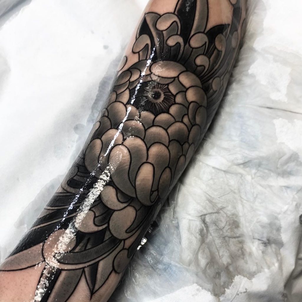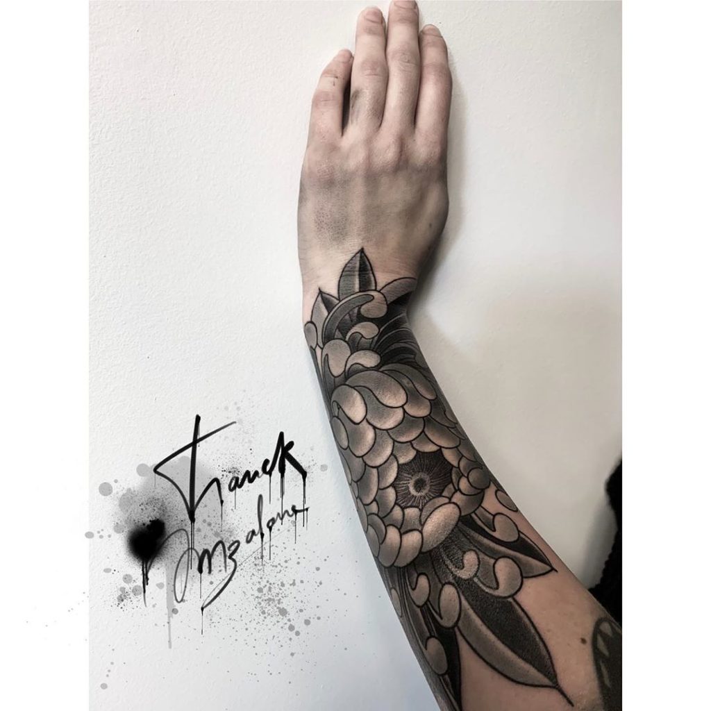 Tattoo Chrysanthème japonaise par Franck Anzalone Misti-Ka