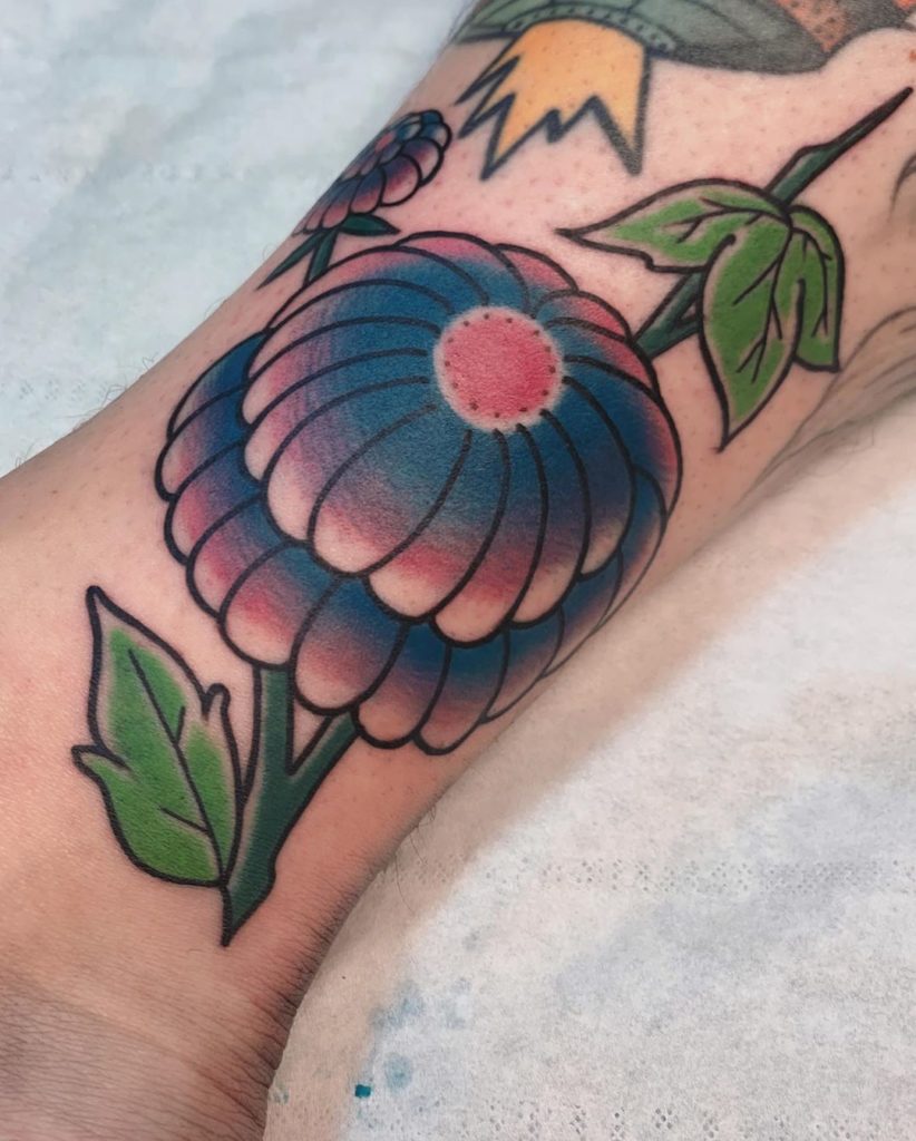 Tattoo floral zinnia Franck Anzalone Misti-Ka