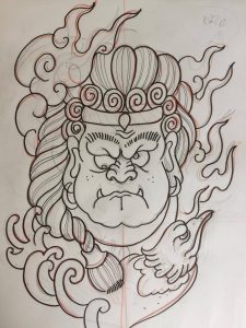Tatouage jambe fudo myoo irezumi par Franck Anzalone