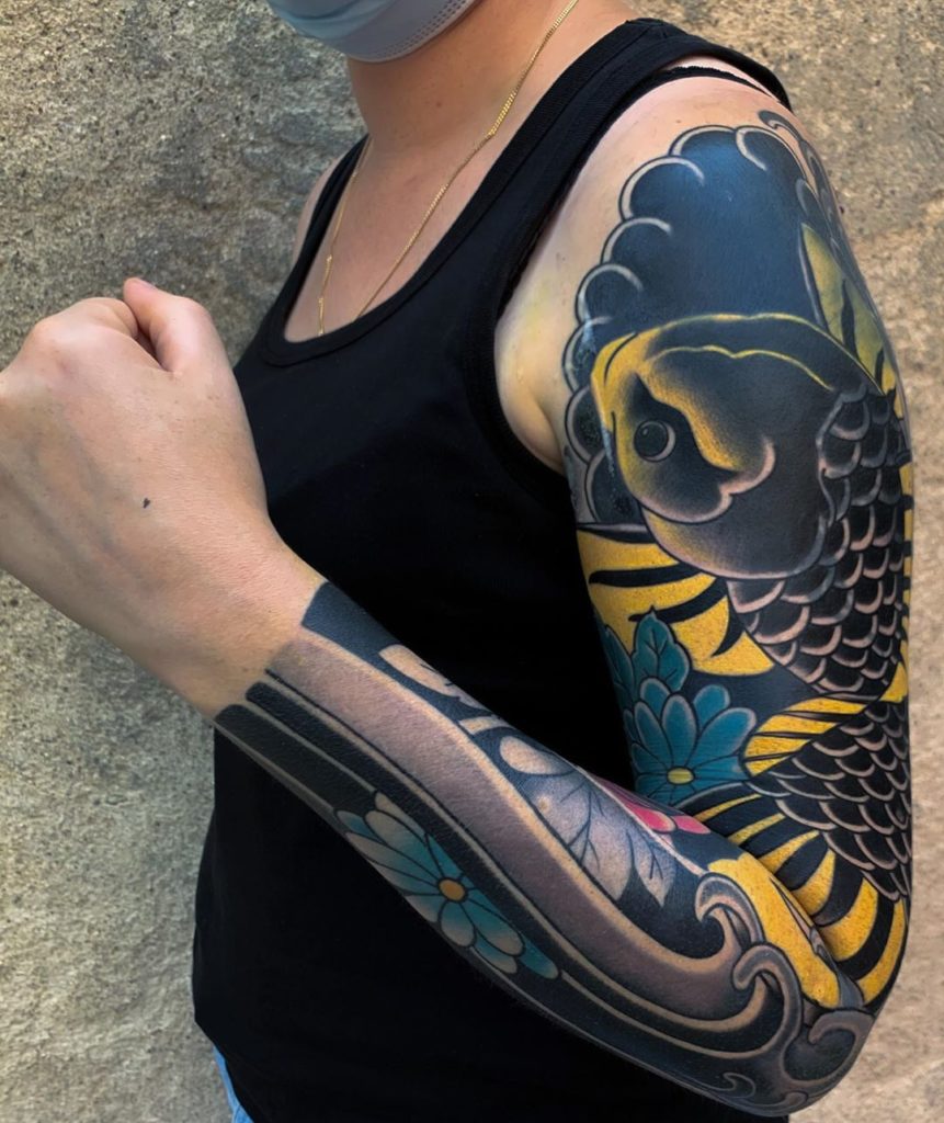 Tattoo irezumi manche koi Franck Anzalone Misti-Ka
