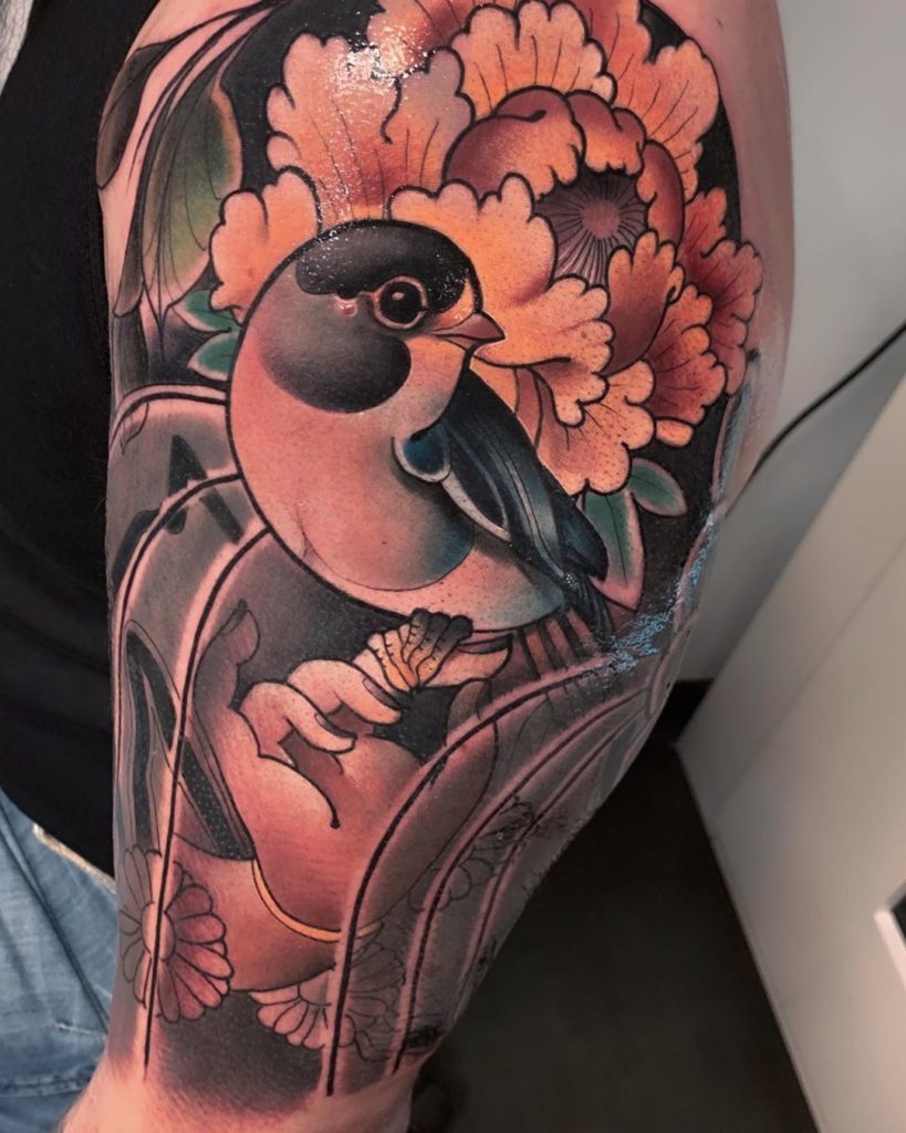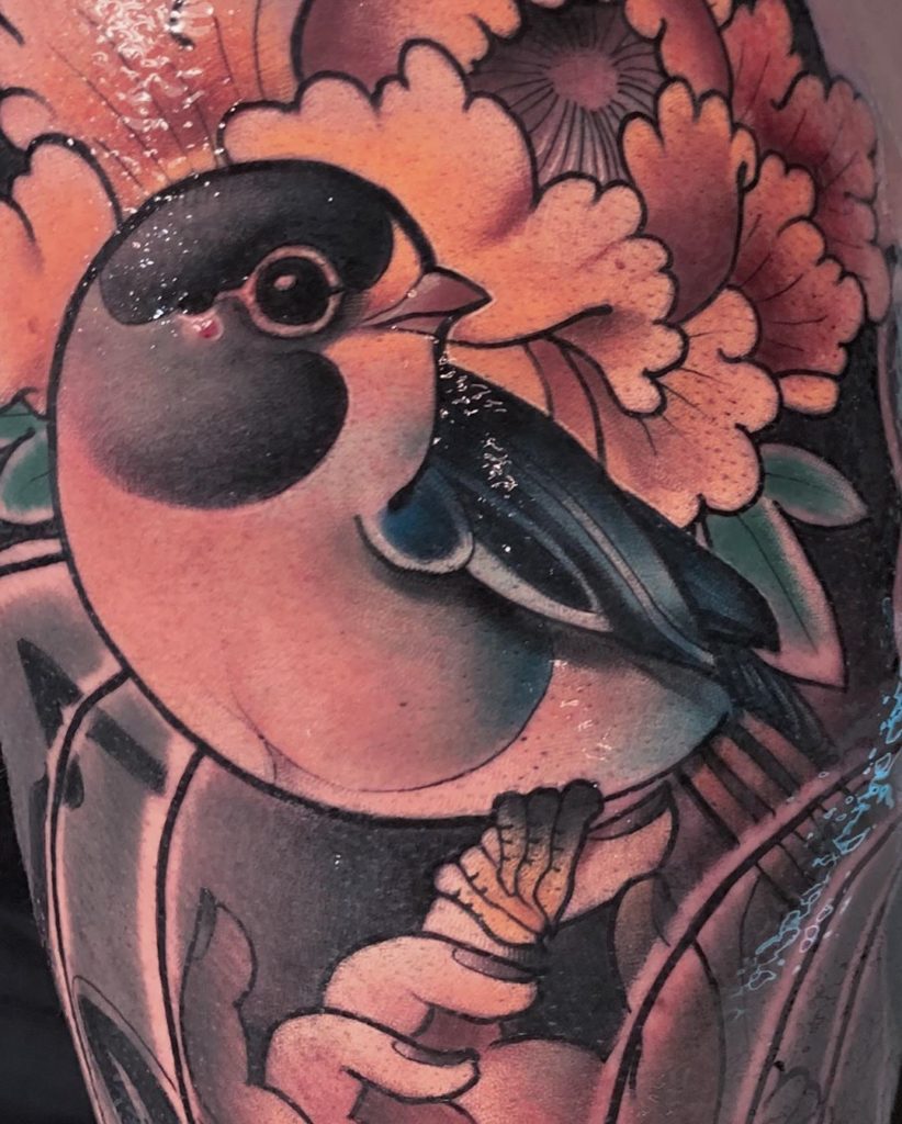 Tattoo oiseau neojap neotrad par Franck Anzalone Misti-Ka